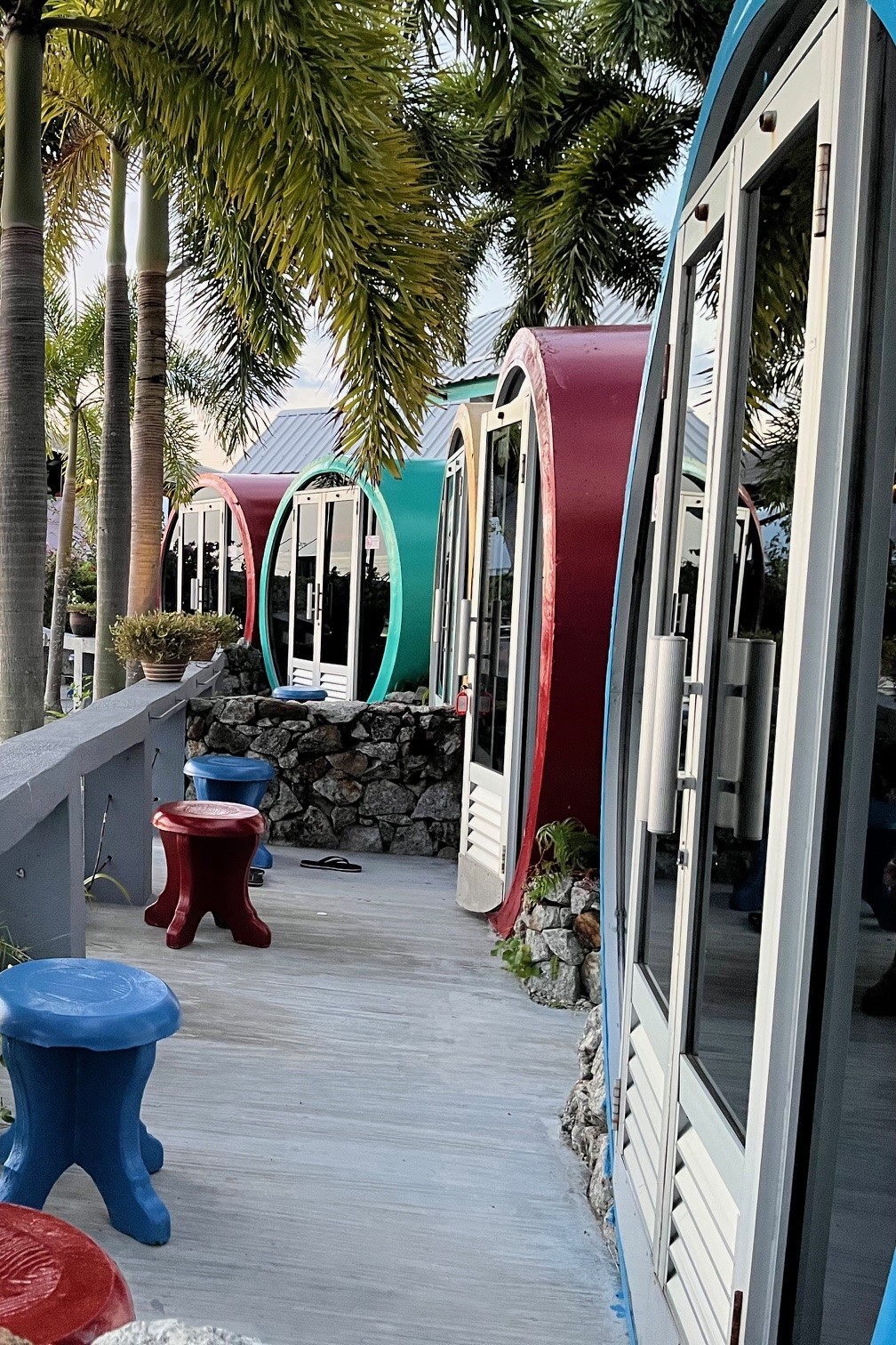 The most striking feature of Tubotel is, without a doubt, its ingenious design. The hotel has converted large concrete pipes into compact yet surprisingly comfortable living spaces. At first glance, the idea might seem impractical, but a closer look reveals a masterclass in minimalist efficiency. Each tube is a cozy and self-contained retreat. It houses a comfortable bed, and the interior walls are often adorned with cheerful murals, adding a splash of personality and color. Mine had stingrays which I loved looking at and also a painting of an attractive young woman enjoying herself at the beach.