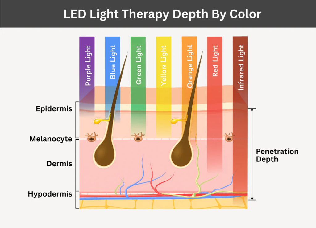 b) Reflecting certain colours on body parts – Colour therapists believe that each colour has a unique wavelength and frequency and can enter the body through the eyes and skin. This frequency will then have an effect on the body. For example, orange light helps to improve sleep quality.
