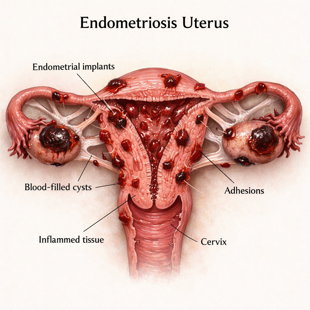 Endometriosis is actually a chronic inflammatory disease where tissues similar to the uterine lining grows outside the uterus—on organs like the ovaries, bowel, bladder, or pelvic lining.