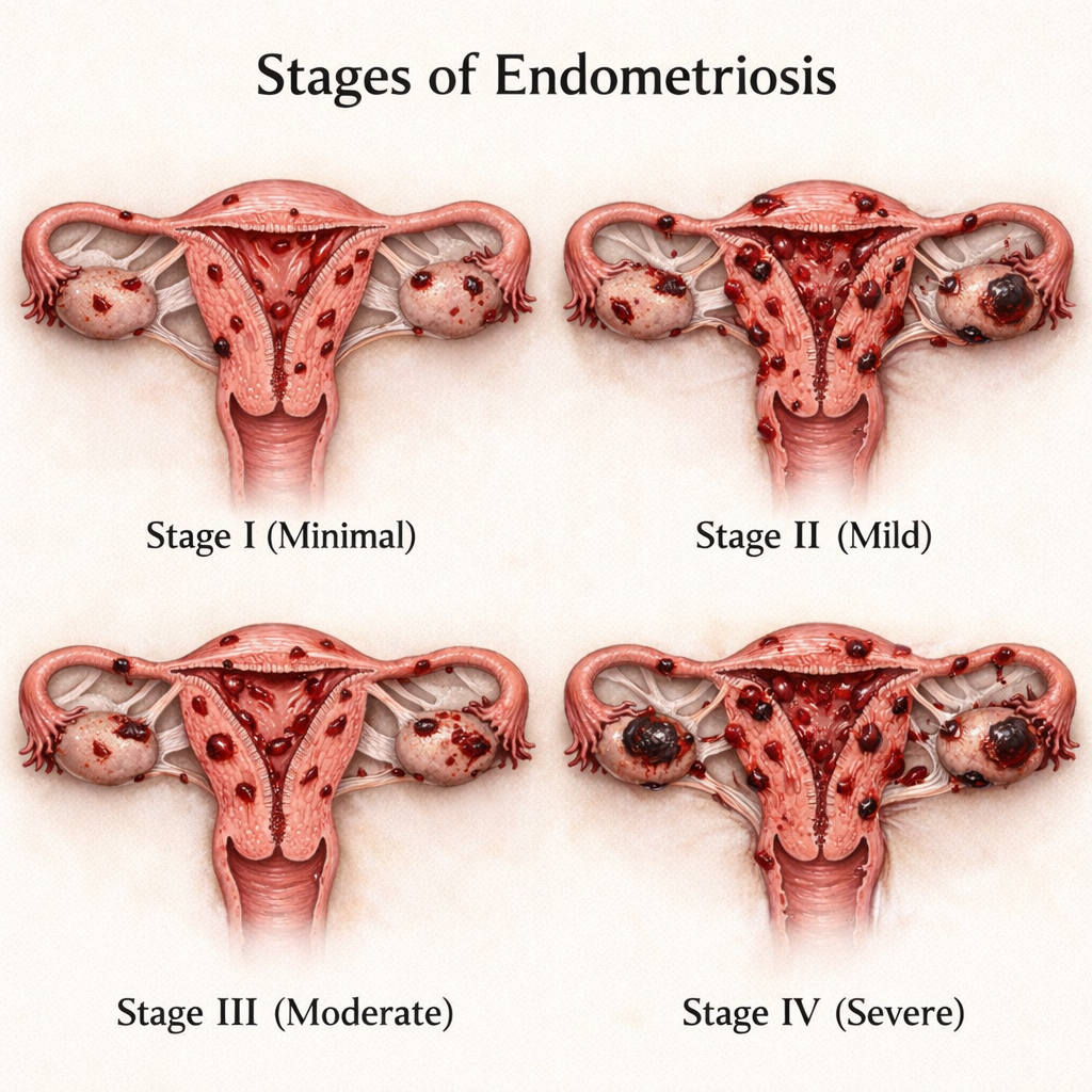 Most patients come and visit a gynae at stage 4 (the most advanced stage). At this stage, the lesions are deep, cysts are large and scar tissues are affecting multiple organs. Many times, these ladies have trouble conceiving due to:
