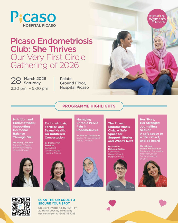 Last but not least, if you are suffering from endometriosis and seeking for support and understanding, Picaso Hospital is having their first ever circle gathering on 28th March 2026.